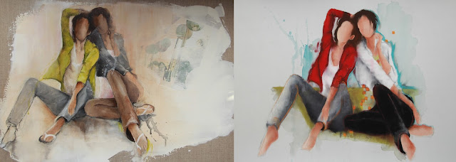 La première à l'acrylique et collages, la dernière pastel et aquarelle , celle ci n'est pas tout à fait terminée mais je n'ai pas résisté à l'envie de la montrer .